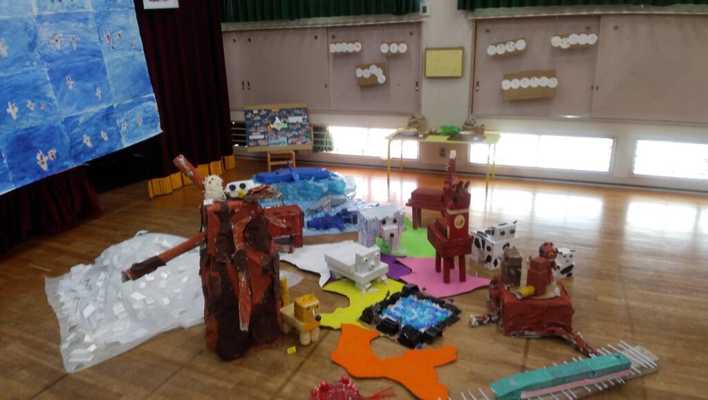 ぶっこう幼稚園のマスコットキャラクターがお出迎え。