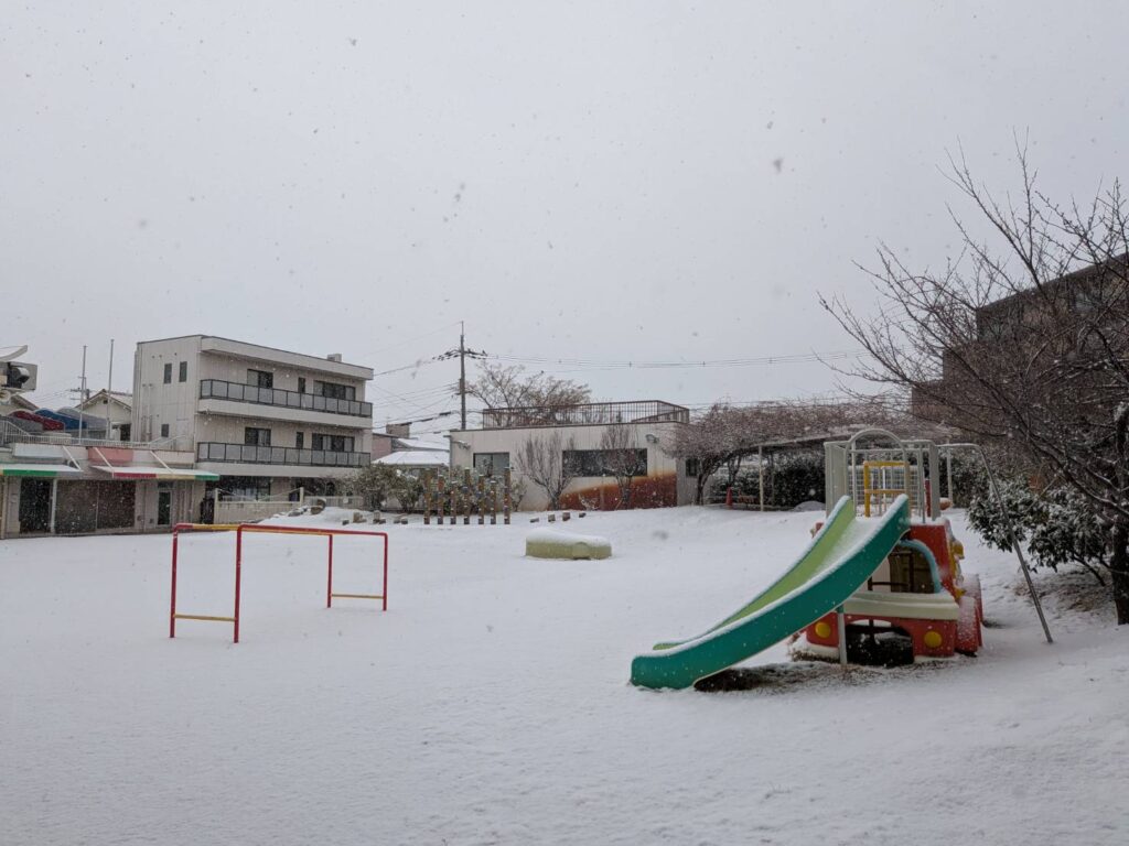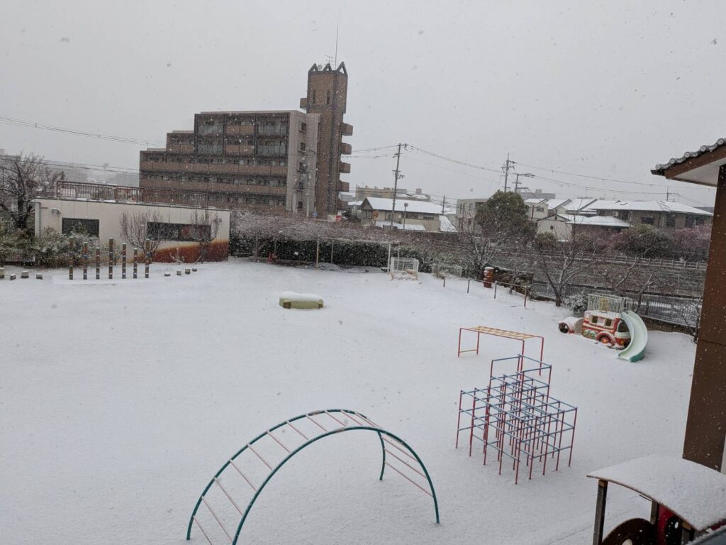 園庭一面が雪に覆われていました。