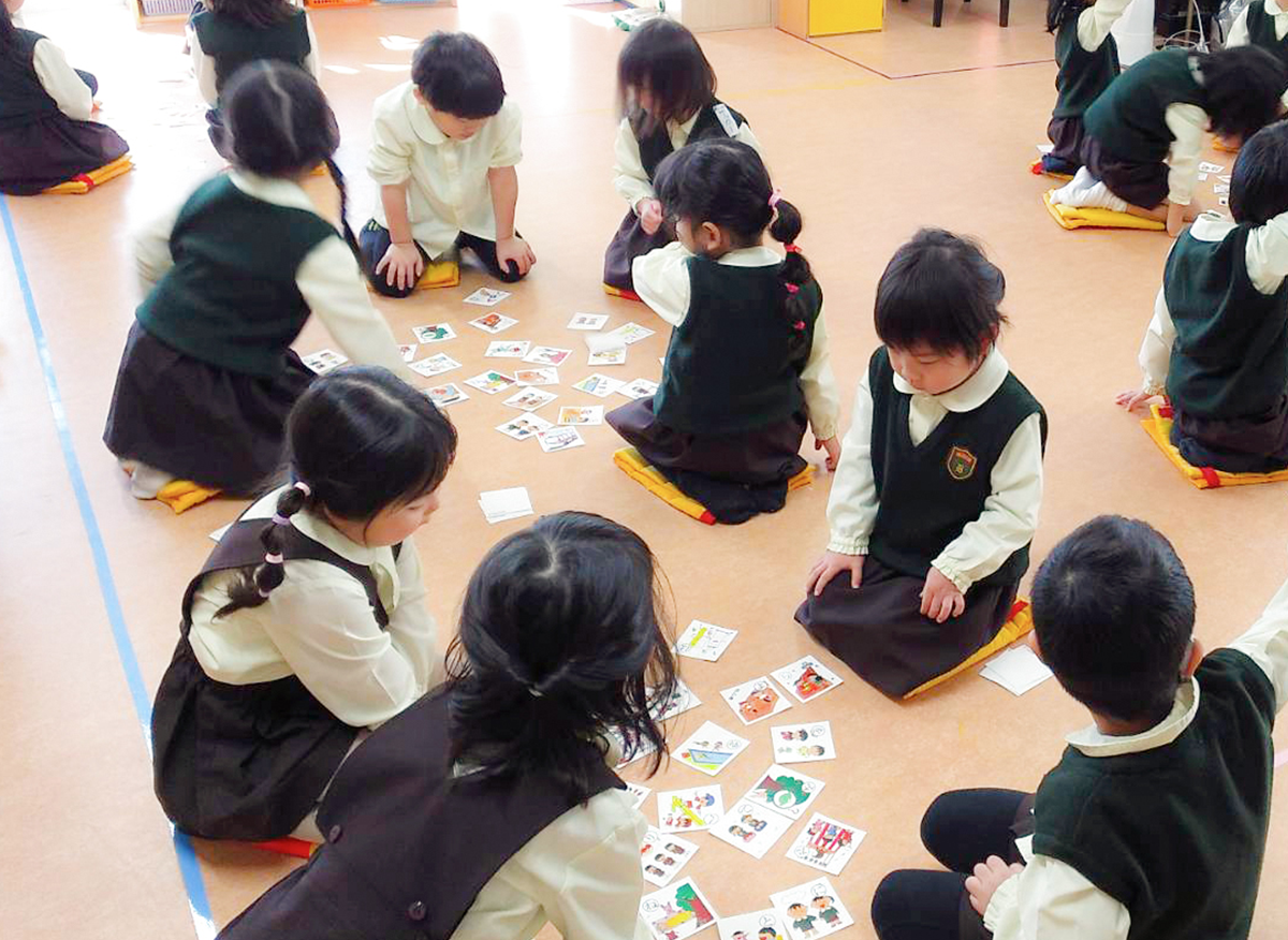 文字、数字ノート学習も利用しながら、教材開発による無理のない知育をおこなていますう。仏光カルタは先生と保護者の手作りでBBC TV取材も受けた注目の教材です。
